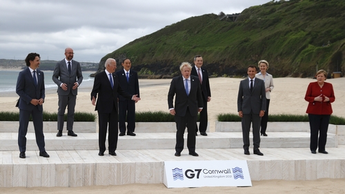 G7 Cornwall / Rl2soin0gv7qdm : Welcomed by boris johnson to the beachside summit venue in carbis bay, cornwall, the leaders posed for a family photo before.